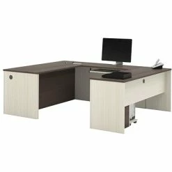 Budget 🔔 Office Desks Bestar® Prestige+ U-Station And 1 Pedestal In White Chocolate & Antigua 🎁
