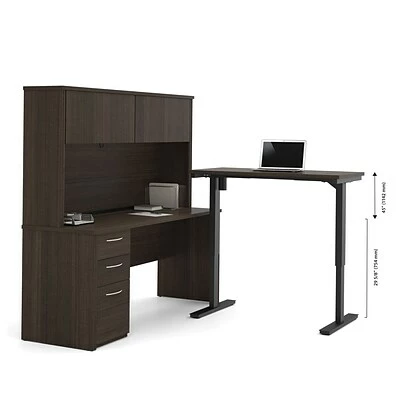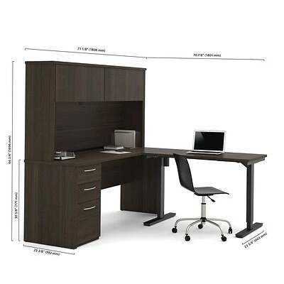 Overall dimensions : 71.1″ x 71″ x 66.8″. Credenza : 71.1″ x 23.4″ x 30.4″. Height adjustable table : 47.6″ x 24″ x 28″ to 45″.