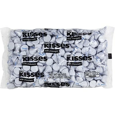 Bulk size bag contains 66 ounces of KISSES Milk Chocolates, enough for all your office needs