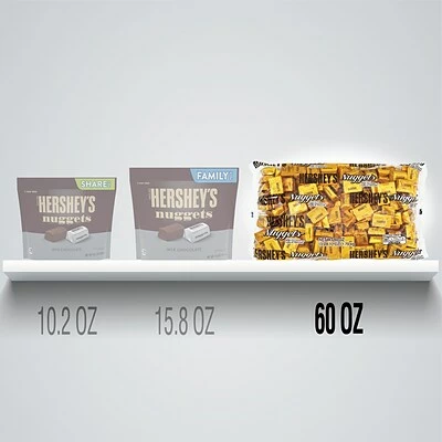 Includes (1) one 60 ounce bulk bag of HERSHEY’S Nuggets Extra Creamy Milk Chocolate candy with Toffee and Almonds