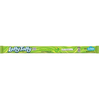 Wonkaยฎ Laffy Taffyยฎ Rope comes in apple flavor and is delicious as well as stretchy. 11″ Rope is individually wrapped and has jokes on wrapper, sold as 24 per box.