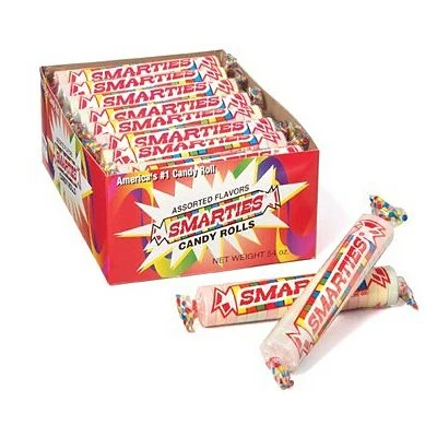 Smartiesยฎ Candy rolls in orange creme, pineapple, cherry, strawberry, grape and orange flavor offer relishing taste. Candy rolls are gluten/peanut/nut free and form a perfect addition for parties, weddings, birthdays, giveaways and more.