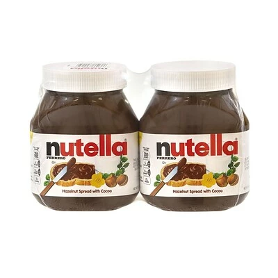 Nutella Hazelnut Spread is a happy start to your day! Enjoy this Nutella Twin Pack, 2-26.5 oz Jars with whole grain toast, pancakes, strawberries, bananas and many other foods! This gluten-free hazelnut spread is perfect for keeping at your desk at the office to add some delicious flavor to your breakfast or snack! Nutella Twin Pack, 2-26.5 oz Jars is great for the office breakroom, too. Two packs for twice the flavor!