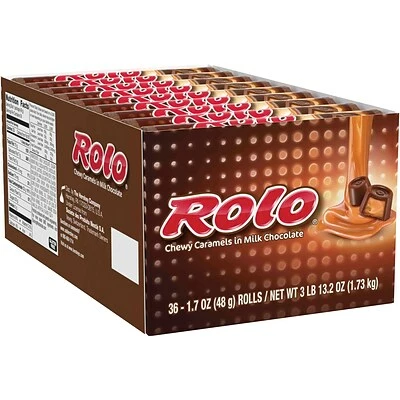 Contains thirty-six (36) 1.7-ounce rolls of ROLOยฎ Chocolate Caramel Candy in a bulk box