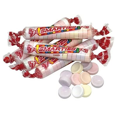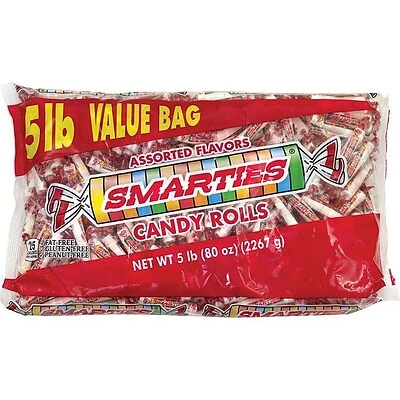 Keep a supply of these conveniently wrapped candies in your break room or reception areas. Each candy wafer is gluten- and nut-free, as well as vegan, making them suitable for a number of dietary needs. These candies come in stacks of assorted flavors, including orange cream, pineapple, cherry, strawberry, grape, and orange. Each 5-pound bag of Smarties contains 60 rolls of wafers, ensuring enough to fill candy dishes in a variety of office settings.