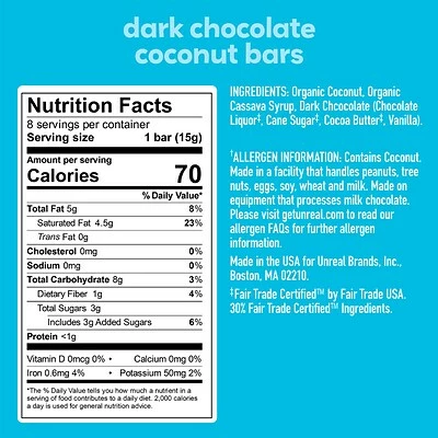 Unreal Dark Chocolate Coconut Bars, 4.2 Oz., 2 Pk