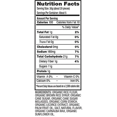 Black Licorice lovers rejoice! There is now an Organic, Gluten Free Black Licorice that also meets the California Prop 65 standards. Available in a resalable 5-ounce bag, our Black Licorice is USDA Organic, Non-GMO Project Verified, Gluten Free, Vegan, Nut Free and Dairy Free. Youโll love the bold yet classic flavor.