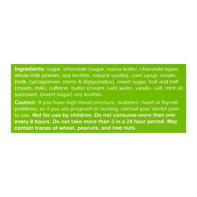 Ever wish you could carry your coffee anywhere with you, having it at the ready whenever you want? Ever wish you could eat your coffee instead of drinking it? Now you can do all this and more. Satisfy your coffee craze anytime, anywhere, with Turbo Truffle Mint Madness, the amazing energy chocolate. Do not consume more than one every 8 hours, or more than 3 in a 24 hour period.
