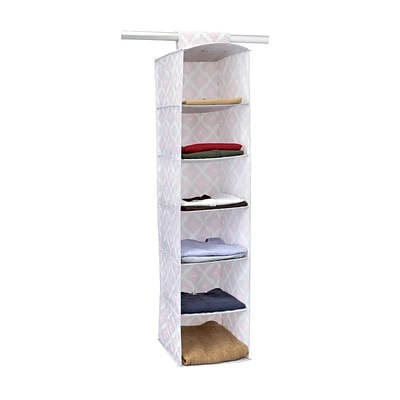 Closet Candie 6 Shelf Non-woven Organizer is made of 100% Polypropylene Nonwoven breathable Material that acts as instant organization for your closet/room, with 6 full length board shelves to prevent bowing and to allow easy access to all of your garments and belongings. Sturdy, durable fabric and cardboard liner helps maintain shape of the closet organizer. Easy installation hangs into any closet rods with it’s strong Velcro closure, and when not in use, simply fold it up and put in storage, saving space.