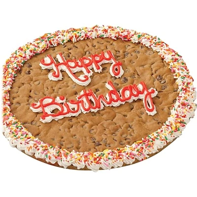 There’s no better way to celebrate a birthday than with a big 12″Dia. birthday cookie cake from Mrs. Fields. Made with semisweet chocolate chips.
