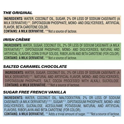 200 assorted Original, Irish Cream, Salted Caramel Chocolate, and Sugar-Free French Vanilla flavored Coffee-Mate Single Serve mini tubs