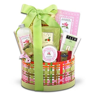A tea party gift for Mom on her special day! Show Mom your love with a gift perfect for any afternoon tea party! Filled with an assortment of Tazo Tea, chocolate treats and spa products she will love!