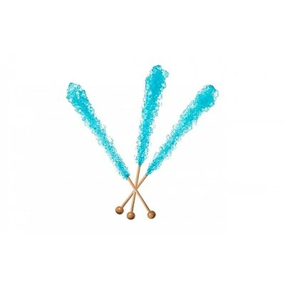 Espeez Enterprises Light blue rock candy sticks are ideal for parties and are delicious. Candy sticks are cotton candy flavored and are individually wrapped for ease, sold as 36 pieces per tub.