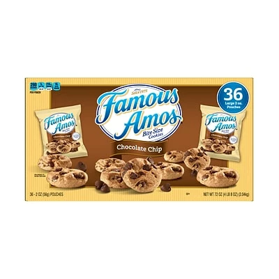 Stock a pantry, break room, or waiting room with these 2-ounce cookie packs made with premium Ambrosia chocolate chips. This case includes 36 packs of Famous Amos chocolate-chip cookies, which are certified kosher.