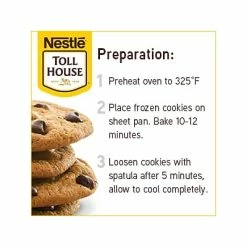 Contains 3 bags of Toll House raw Chocolate Chip Cookies with 20 cookies per pack. Nestle Toll House Chocolate Chip Cookie Dough bakes up to a rich, golden-brown cookie, overflowing with rich Nestle Toll House Semi-Sweet Chocolate Morsels. When baked they feature a light crunch and a soft, chewy center. Keep frozen (ships frozen with dry ice) and immediately before consumption, cook via conventional oven. To cook: first preheat oven to 325, place frozen cookies on sheet pan, bake 10-12 minutes, loosen cookies with spatula after 5 minutes, and allow to cool completely before enjoying!