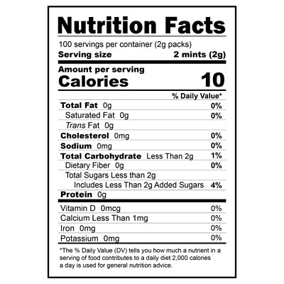 Box contains 100 individually wrapped mint packs (two mints per pack)