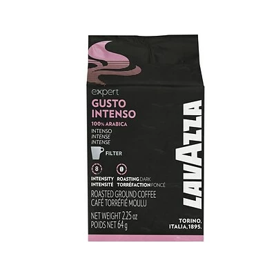 Intense and robust, the Lavazza Gusto Intenso has a full-bodied taste, typical of 100% Brazilian arabica. The dark roasting strengthens the aromatic intensity for a slightly bitter dark chocolate aroma with a sweet caramel aftertaste.