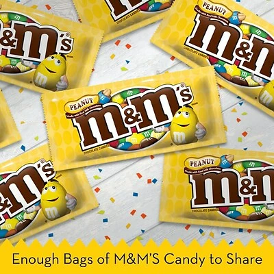 Celebrate everyday moments with M&M’S Peanut Chocolate Candy. Made with real milk chocolate, roasted peanuts and coated in a colorful candy shell, M&M’S Candy bite-size chocolates bring delicious fun to game day, the work day or any day. With 48 individual full size pouches in every box, this bulk candy package is great for stocking vending machines, concession stands and the office pantry. There’s no end to the fun you can have with M&M’S Peanut Chocolate Candy.