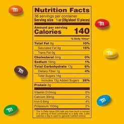 Contains one (1) 38-ounce party size bag of M&M’S Peanut Chocolate Candy
