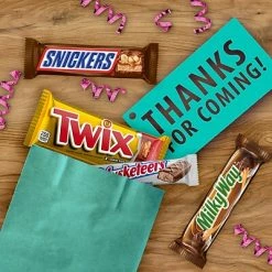 Everyone has a favorite candy. Find them all in one place with this 30-piece SNICKERS Original, TWIX, 3 MUSKETEERS, and Milky Way bulk candy chocolate assortment mix. This candy variety pack includes all the Full Size candy favorites that everyone loves. With 30 Full Size candy bars in every box, this bulk chocolate candy box has enough delicious fun to share at birthday parties and anytime celebrations. Individually wrapped candy is great for party favors, pinata candy, crafts, Christmas candy stocking stuffers or Halloween candy. Make any celebration more delicious with SNICKERS, TWIX, 3 MUSKETEERS, and MILKY WAY bulk candy. Each assorted candy bulk pack includes 11 SNICKERS Original chocolate candy bars, 8 TWIX chocolate candy bars, 6 MILK WAY candy bars, and 5 3 MUSKETEERS chocolate candy bars. Bulk individually wrapped candy is a pantry staple. Take them on-the-go in lunches or with you on family road trips to enjoy chocolate candy treats on the road. Please all the candy lovers in your life when you break out this Full Size candy assortment mix. Stock the office pantry and always have plenty of candy on hand for a chocolate pick-me-up anytime. Perfect for fundraisers and concession stands. Bulk variety candy packs of everyone’s favorite treats are a great value and the perfect way to help you reach your fundraising goal faster. Adding a sweet and tasty treat to your lineup of concession offerings helps you appeal to everyone’s sweet tooth. Whatever the occasion, you can’t go wrong with this 30-count SNICKERS Original, TWIX, 3 MUSKETEERS, and MILKY WAY chocolate candy bulk assortment mix.