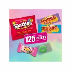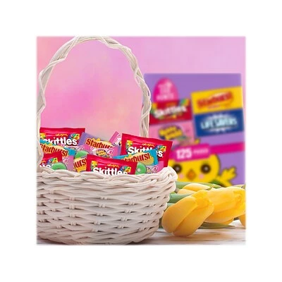 Fruity candy and gum lovers, rejoice! Stock up on fruity Easter candy treats with this bulk candy assortment mix of SKITTLES Original, STARBURST Original, LIFE SAVERS gummy candy, and Hubba Bubba Max bubble gum and fun-size candy. It’s the perfect mix to fill Easter candy baskets and Easter eggs. The 125-piece variety bag features four fun-size Easter candy favorites. Give your candy dish a springtime refresh with individually wrapped STARBURST candy. Fun-size SKITTLES candy is a fruity treat everyone will love to find in their Easter baskets. Easter egg hunters will be thrilled by Easter egg candy as good as LIFE SAVERS gummy candy rings and Hubba Bubba Max chewing gum pieces. A must-buy for your Easter candy assortment.