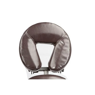 Master Massage specially constructed the Bedford Portable Massage Chair for students and professionals who need to transition between the office, mall or clients’ houses. While the chair is so light it can easily be transported from site to site, it’s sturdy enough to support a working weight up to 500lbs., thanks to its innovative aircraft-grade steel frame. The chair is cushioned with Master Massage’s exclusive Multi-Layer Small Cell foam, which is engineered to be more dense than any other foam available, and therefore more comfortable for clients. The Brown Luster PU upholstery is oil- and water-resistant, and backed by a Master Massage 3 Year Guarantee. Additionally, the eco-friendly No-Mark finished frame is electrostatically powder coated to prevent rust, nicks, and scratches, to keep the Bedford looking band new for years. The Bedford package comes with a six-way adjustable face cradle, a Max Comfort foam layered pillow and a free carrying case.