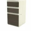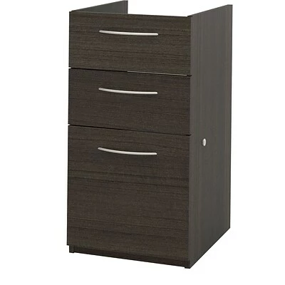 The pedestal offers two utility drawers and one file drawer with letter/legal filing system