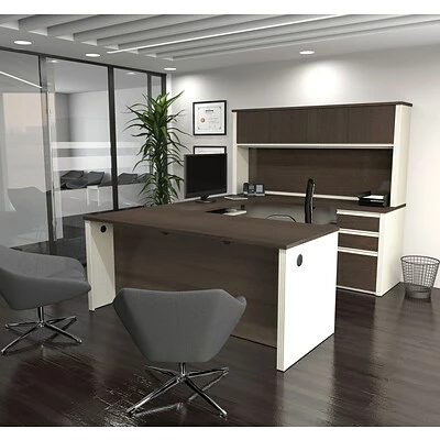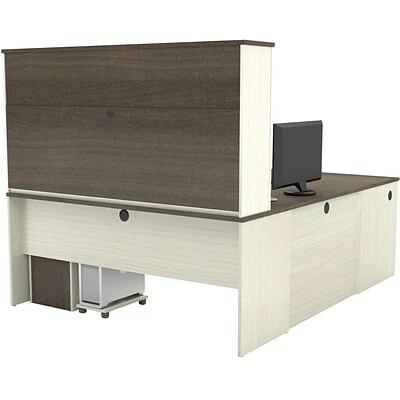 The hutch for credenza offers large closed storage space, efficient wire management and side moldings. The opening has 11” 3/4 high which is ideal for letter format binders.