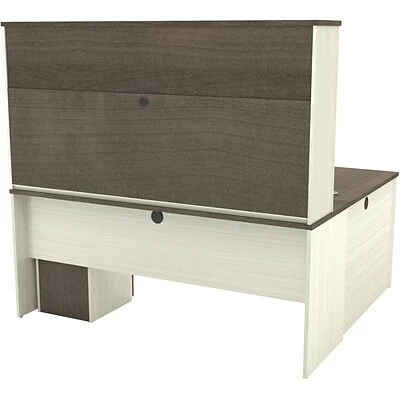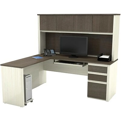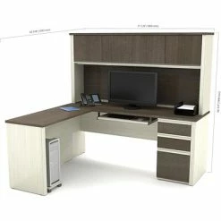 The desk is made of a durable 1″ commercial grade work surface with melamine finish that resist scratches, stains and wears.