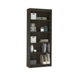 The bookcase features 5 shelves, three of which are adjustable