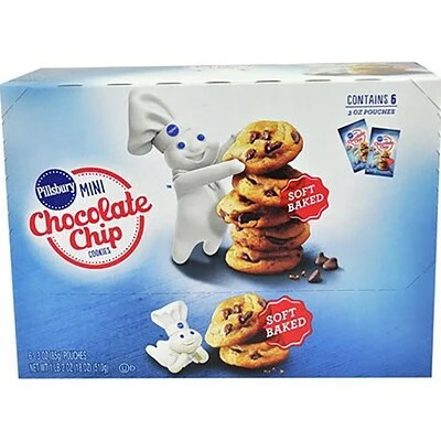 Pillsbury Mini Chocolate Chip cookies are sweet bite-size cookies in a soft-baked texture. Individually wrapped for a convenient, grab-and-go indulgent snack.
