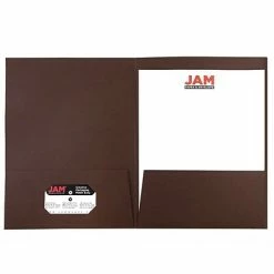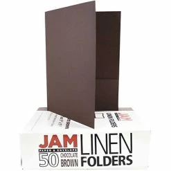 Looking for something classy and sweet to store and carry your notes and documents? JAM Paper® Chocolate Brown Linen Two Pock Presentation Folders are made out of 100lb card stock and measure 9 x 12 inches inside, making them ideal for standard sized sheets of paper. This pack includes a total of 50 folders. Each one has two pockets on the inside and a business card slot within the left side pocket. These folders feature a dark chocolate brown color and a sophisticated linen texture that looks fantastic on the shelves in your office or within your bag or briefcase as they keep papers secure and orderly while being carried.