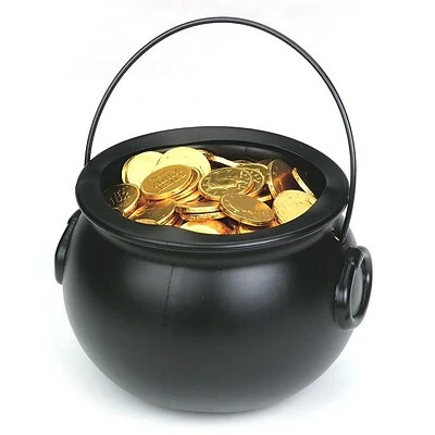 S&Sยฎ Pot of gold chocolate coins are filled in a 8″ Dia plastic pot. Each chocolate coin is gold foil wrapped and contains 144 in total.