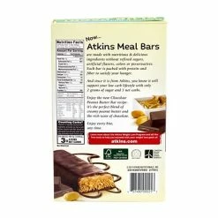 Atkins Meal Bars are made with nutritious and delicious ingredients without refined sugars, artificial flavors, colors, or preservatives. Each bar is packed with 16-Grams of protein and 12-Grams of fiber to satisfy hunger. This 15-Bar box is filled with the perfect blend of creamy peanut butter and the rich taste of chocolate. This healthy, high protein meal bar is great as a meal, snack, or treat. Whether you’re looking for a new diet snack food, or just a great-tasting protein bar, this Atkins Chocolate Peanut Butter Meal Bar is just what you need.
