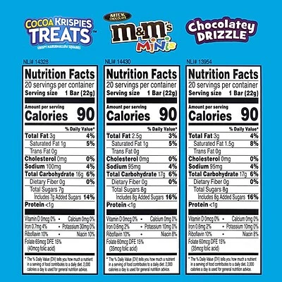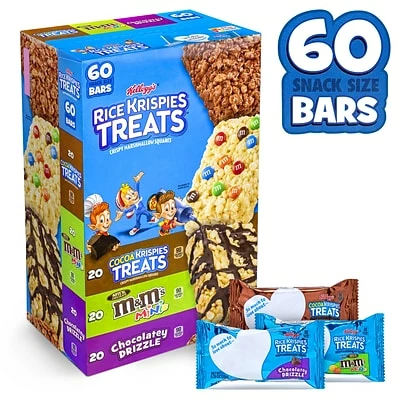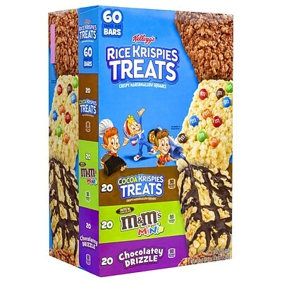 Make snack time a little sweeter and more fun with Snap, Crackle, Pop, and the irresistible taste of Rice Krispies Treats Crispy Marshmallow Squares. Includes 1, 45.15-ounce box containing 60 Rice Krispies Treats in three flavors, Chocolate, Rainbow, and Chocolatey Drizzle. When it’s time for a sweet snack, take your pick. Each square is made with puffed rice cereal and the taste of chewy, gooey marshmallows for a delicious, ready-to-eat treat wherever you take it. A tasty snack any time of day; each individually wrapped package contains one crispy marshmallow square that’s perfect for snacks at school, the office, traveling, lunchtime, at the game, and more. Enjoy them by yourself or share with friends and family, Rice Krispies Treats Crispy Marshmallow Squares make great fillers for goodie bags, gift baskets, or care packages. Satisfy your sweet craving with the simple goodness and on-the-go convenience of Rice Krispies Treats Crispy Marshmallow Squares.