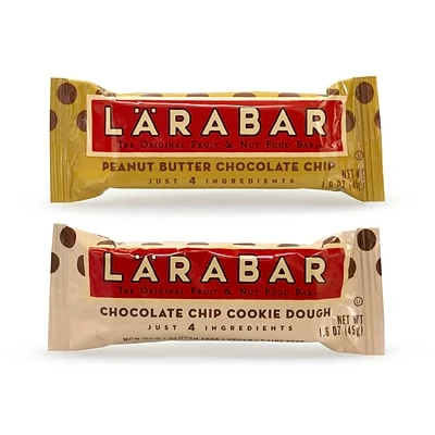 Stock home pantries, public kitchens, cafeterias, and vending machines with this selection of delicious bars perfectly sized for a quick snack. This Larabar variety pack includes 20 individually wrapped bars in two delicious flavors excellent for sharing at meetings or taking on the go.