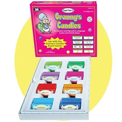 Super Duper® Granny’s Candies® Set 2 book consists of 672 semantic skill cards of size 3″ X1″, 84 for each skill area and activity book with activities and games. Set 2 with vocabulary and figurative language cards is ideal for grades 2 to 6.